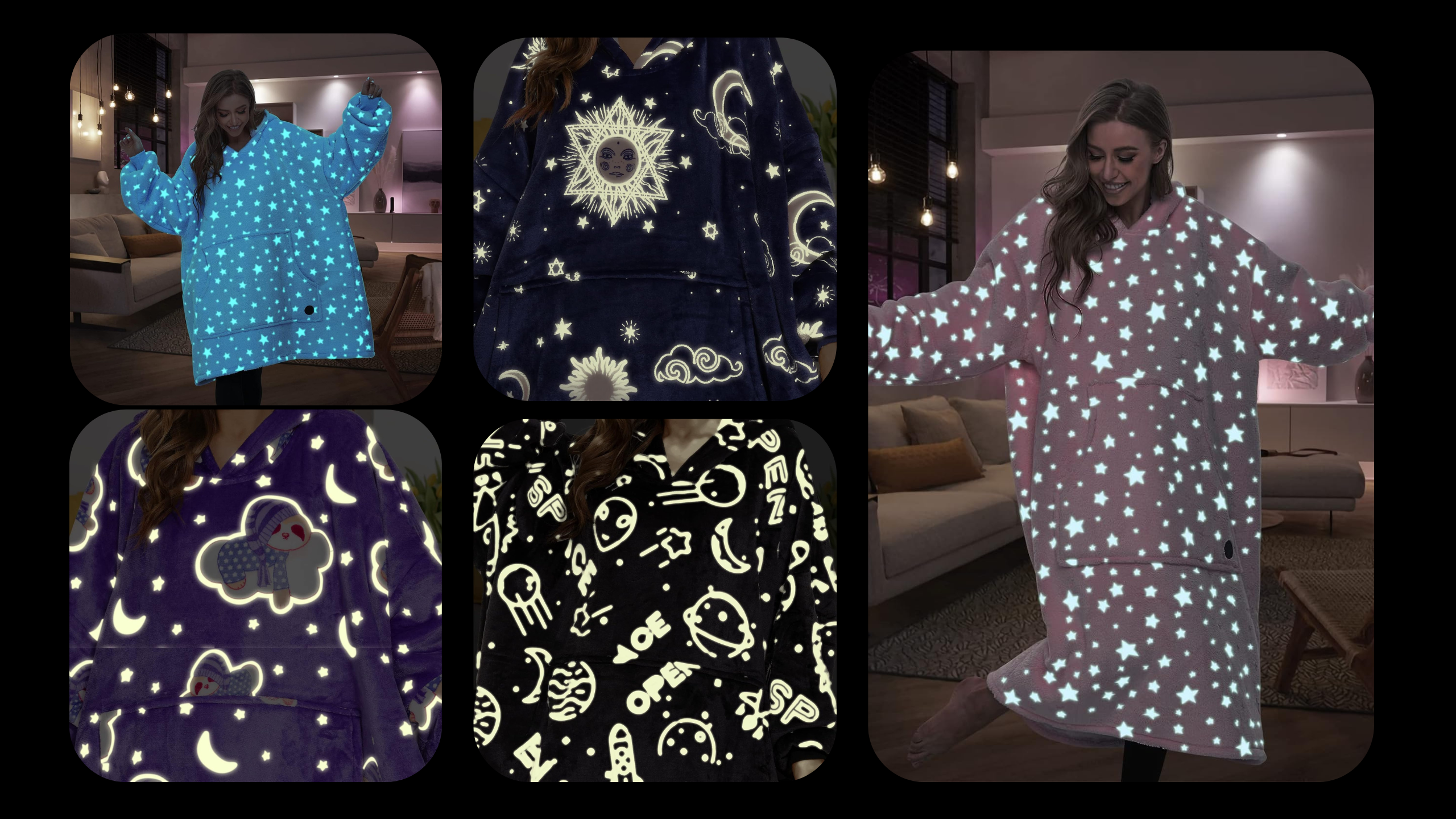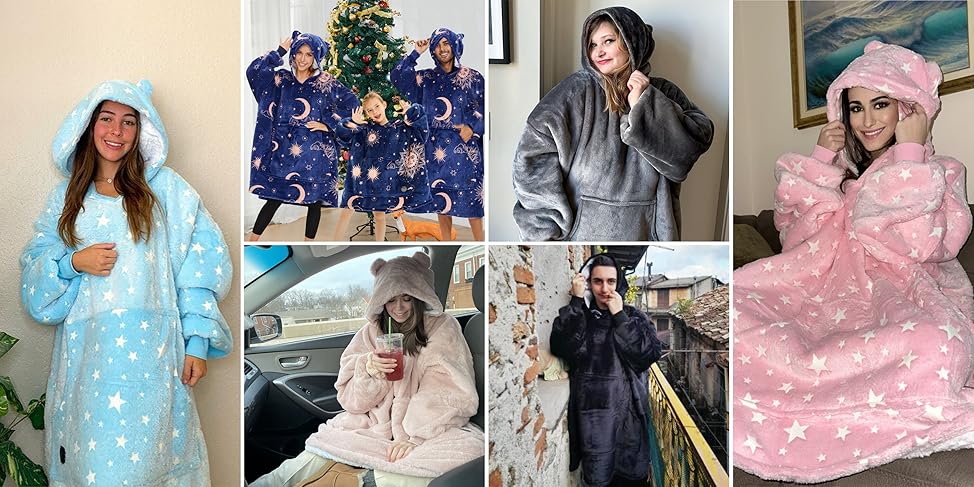 Our oversized blanket hoodies are made to turn every moment into a warm, dreamy escape — soft fabrics, starry patterns, and comfort you can live in